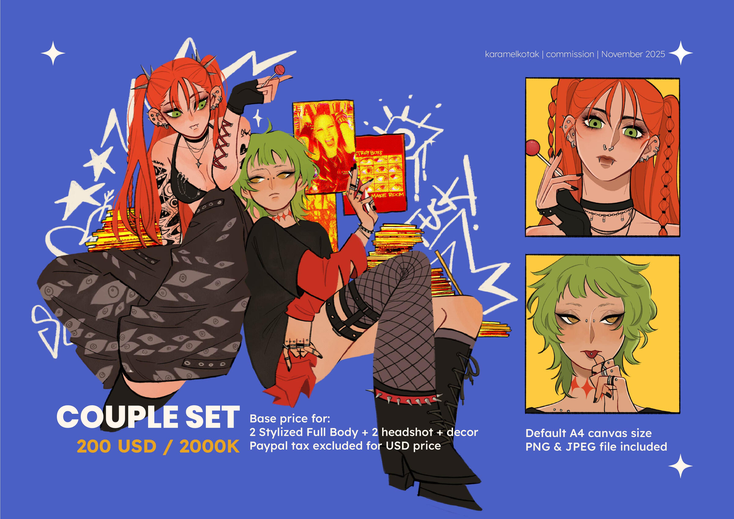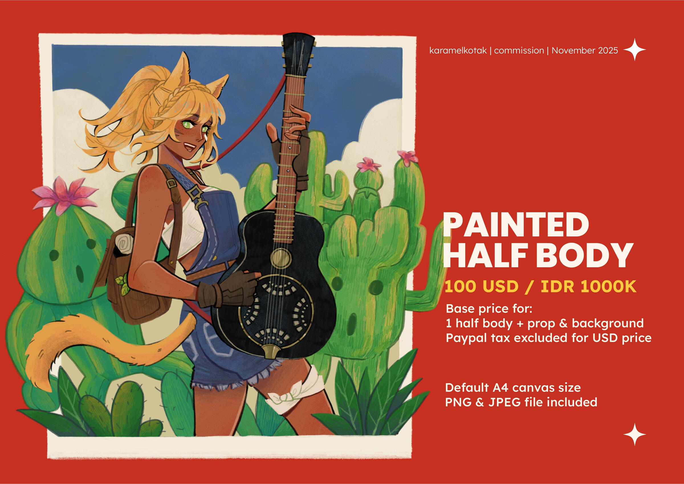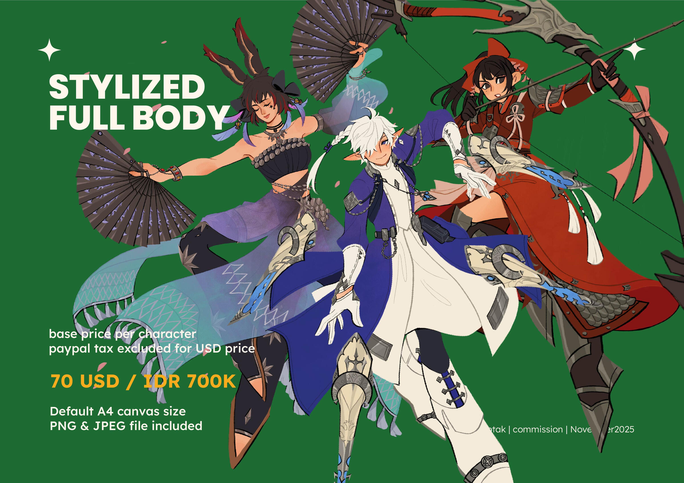 Full payment upfront through PayPal invoice (USD) or bank transfer (IDR) after a sketch is agreed. IDR price is for Indonesian only.